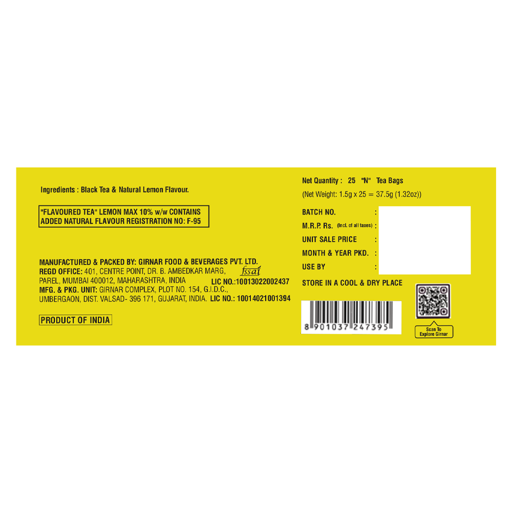 Girnar Black Tea Bags - Lemon